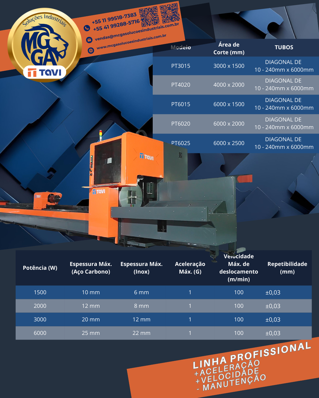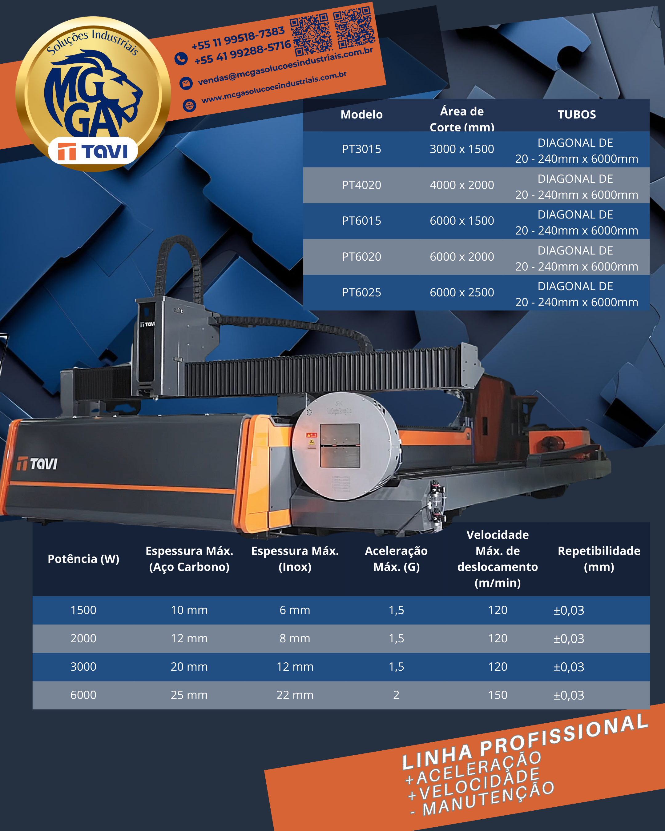 Versatilidade total: Corte de chapas e tubos na mesma máquina.